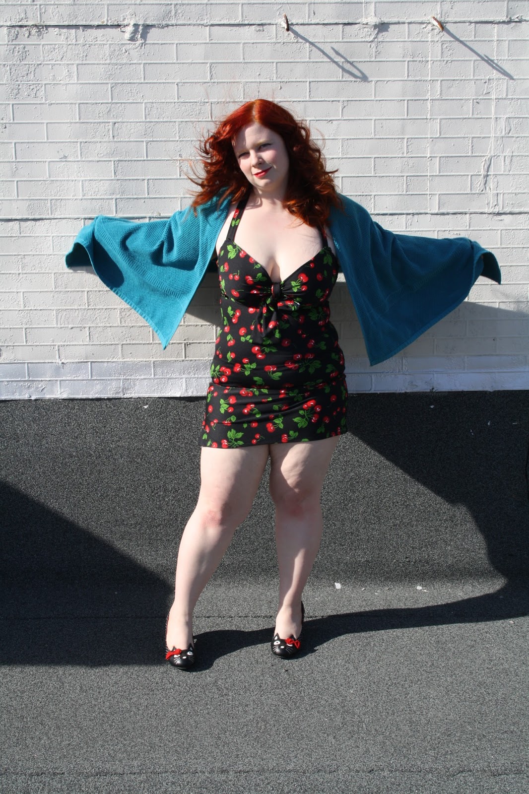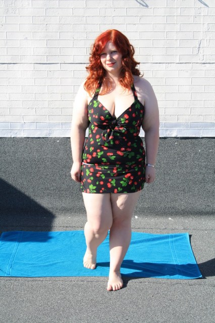 So! Today I finally felt well enough to take some photos of my self-made swimsuit. Let me just say, though, that for years I have loathed trying on swimsuits, wearing swimsuits, and generally being near them at all. I’m sure many girls feel my pain, especially if they’re on the curvier end of the spectrum, as I am. But you know, an unexpected thing happened – I think I look good in this swimsuit.