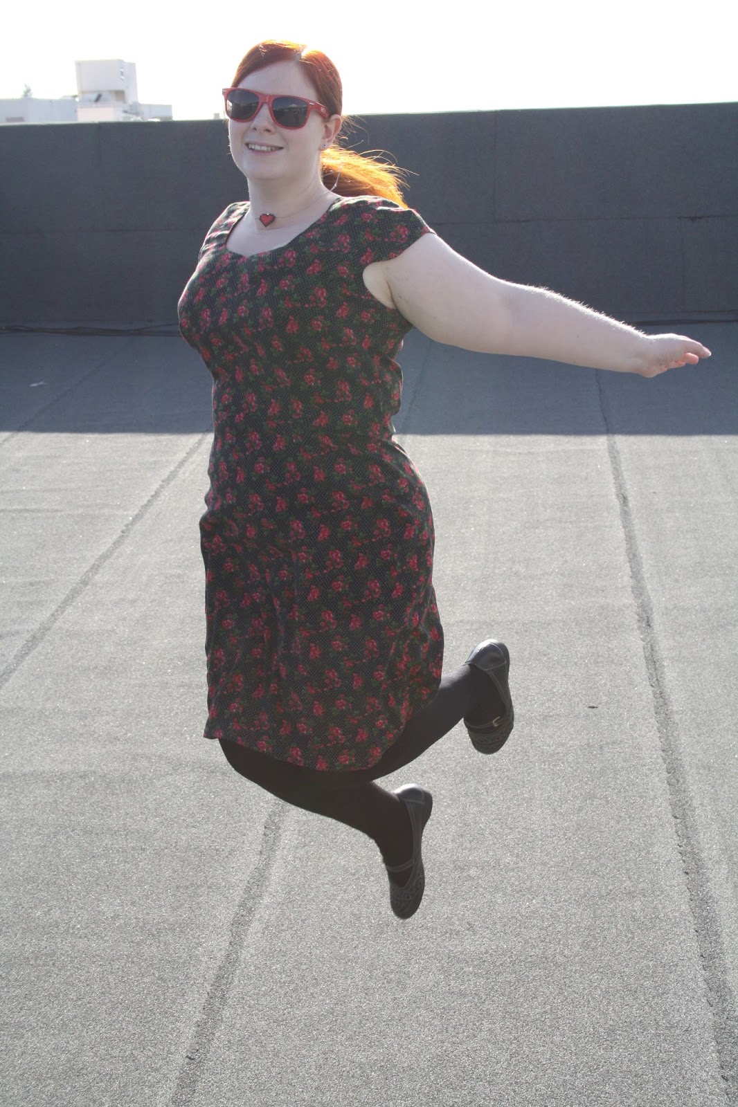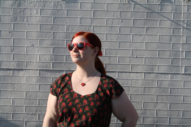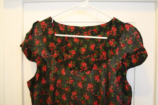 In a way, I’m glad it’s a little loose. No one wants to wear a tight dress in the summer, after all. I’m thinking I’ll take the hem up another inch, too – it’s just a slightly awkward length on me (even though I was panicking slightly as I took it up 2 inches originally!) I didn’t bother with the pleating of the skirt, it would have been lost in such a busy print (plus I’m lazy. There, I said it.)