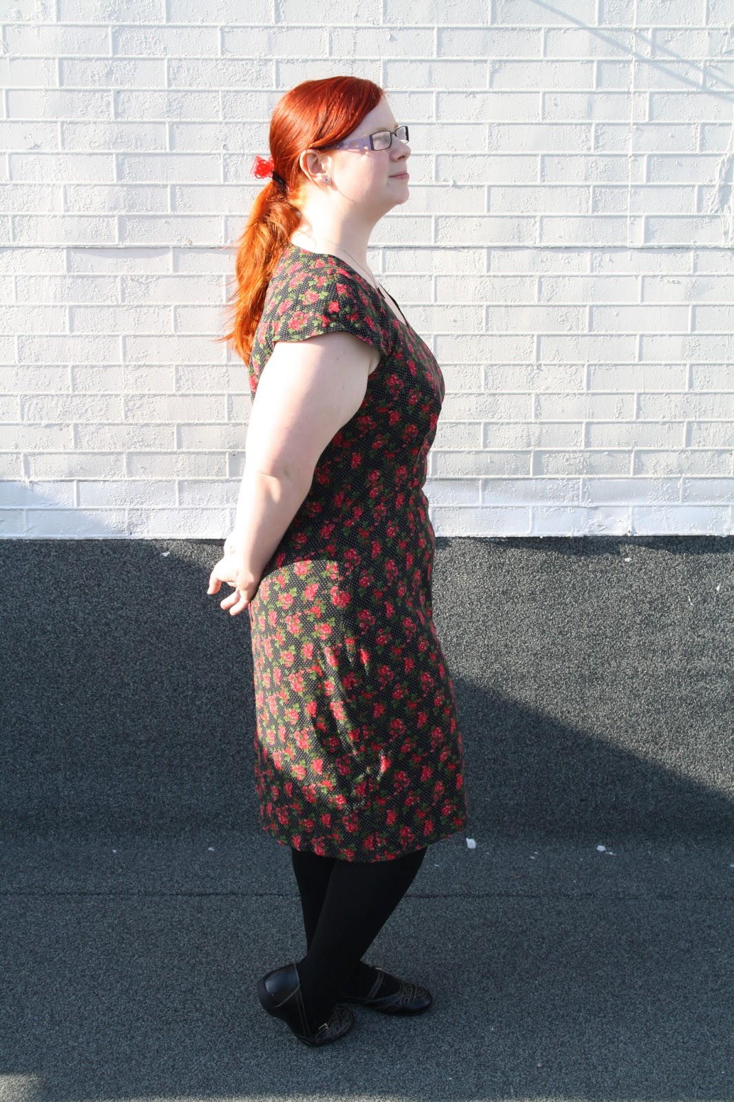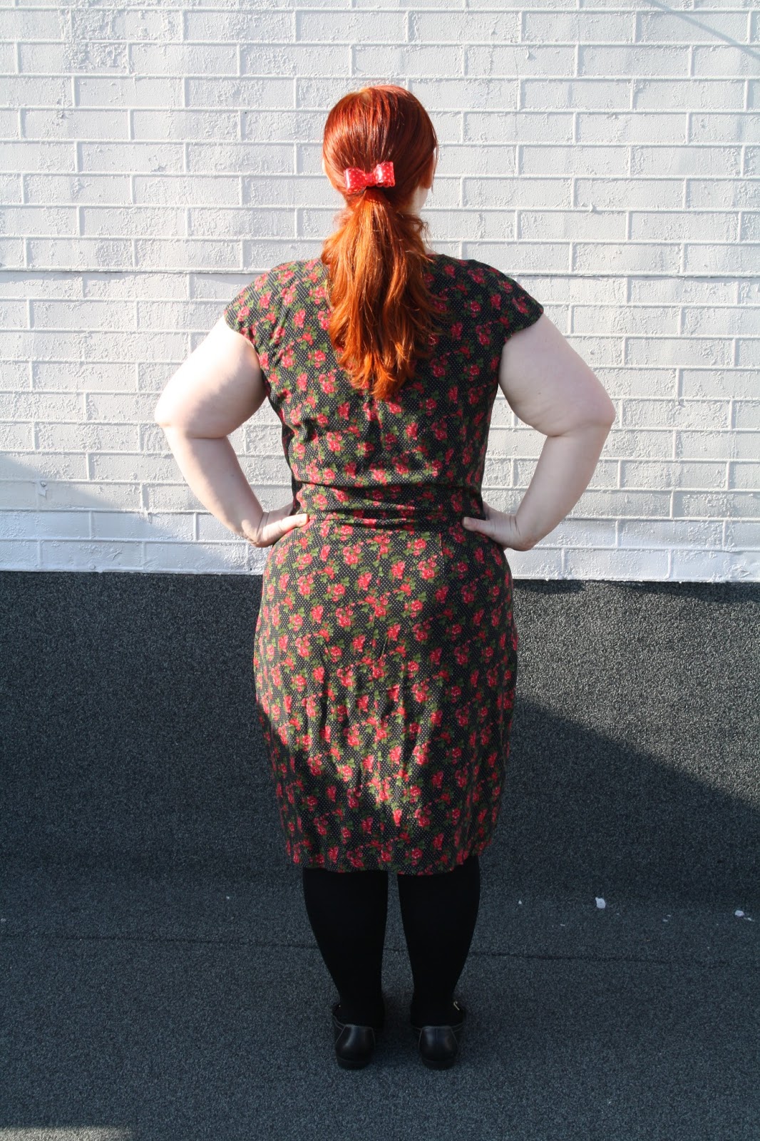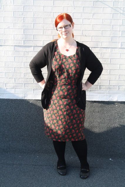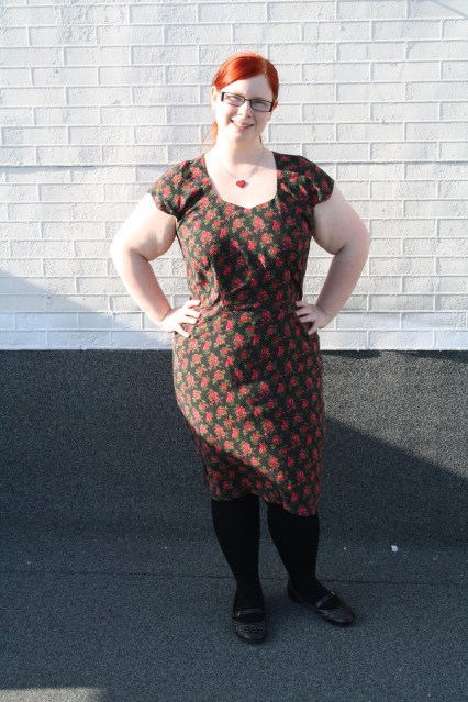 As you can see, there’s a lot of excess fabric in the lower back – a common problem with the Pastille pattern, I’ve discovered. When I make it again (when, not if), I’ll definitely shorten the bodice and size down. I didn’t bother putting in a zip – I did have one on hand, but I decided to try just sewing it up and slipping it on, and that works fine.Β