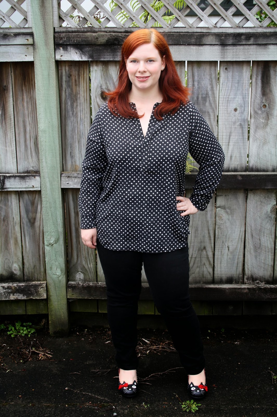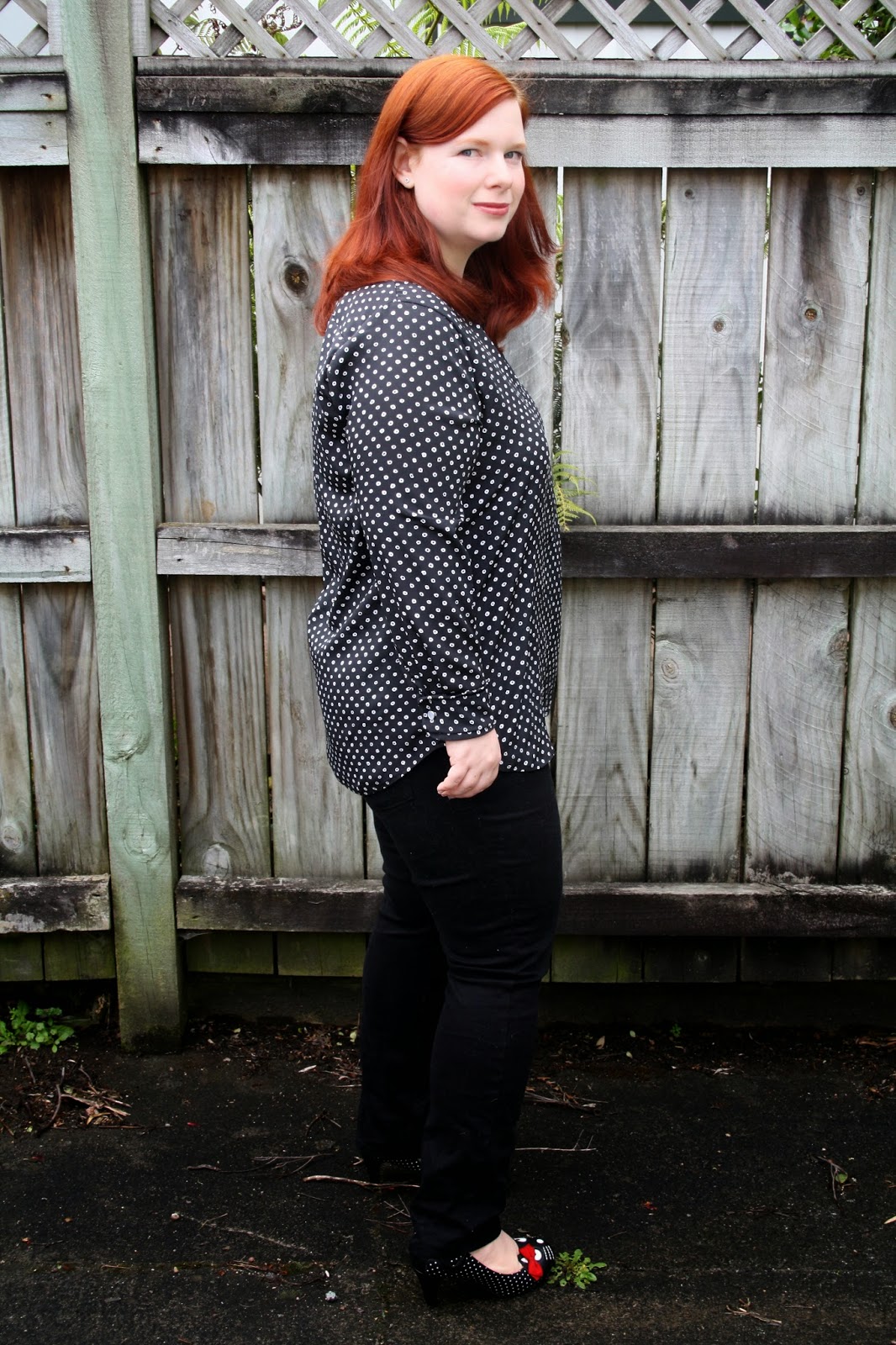 This was my first time using a Style Arc pattern, and it’s their Camilla blouse. Style Arc are an Australian indie sewing pattern company, and they have a pretty good variety of patterns. I’ve been wanting a popover style shirt for some time, so I thought Camilla would be perfect. As you may know, Style Arc offer single sized patterns, which was my first problem, as my measurements fell on the border of two sizes, and my upper arm measurement into another, yet larger, size. After exchanging a few emails with Chloe at Style Arc, and giving her my measurements, she suggested a 16, which is what I bought, and I also got the Emily knit top as my free pattern.