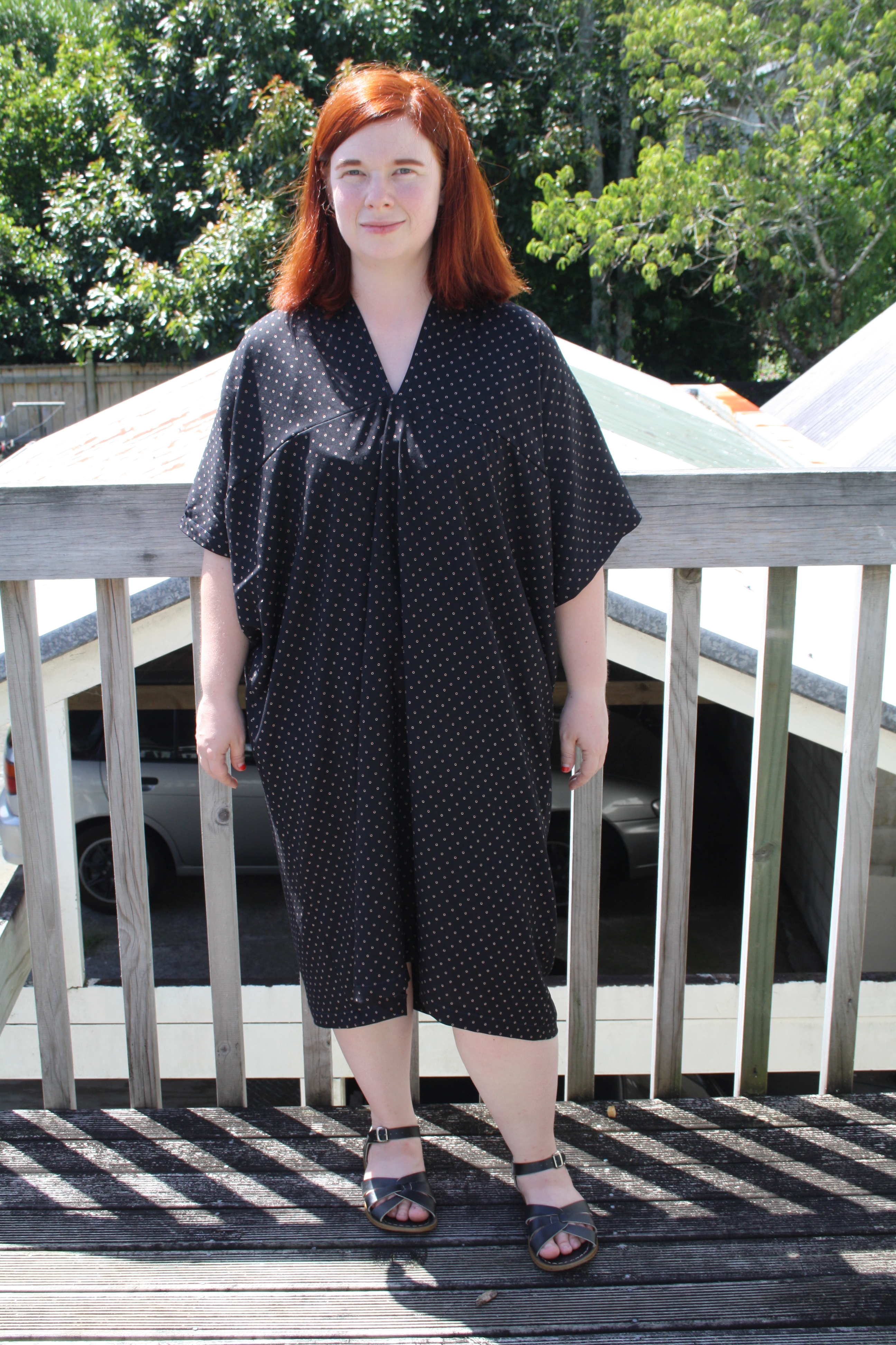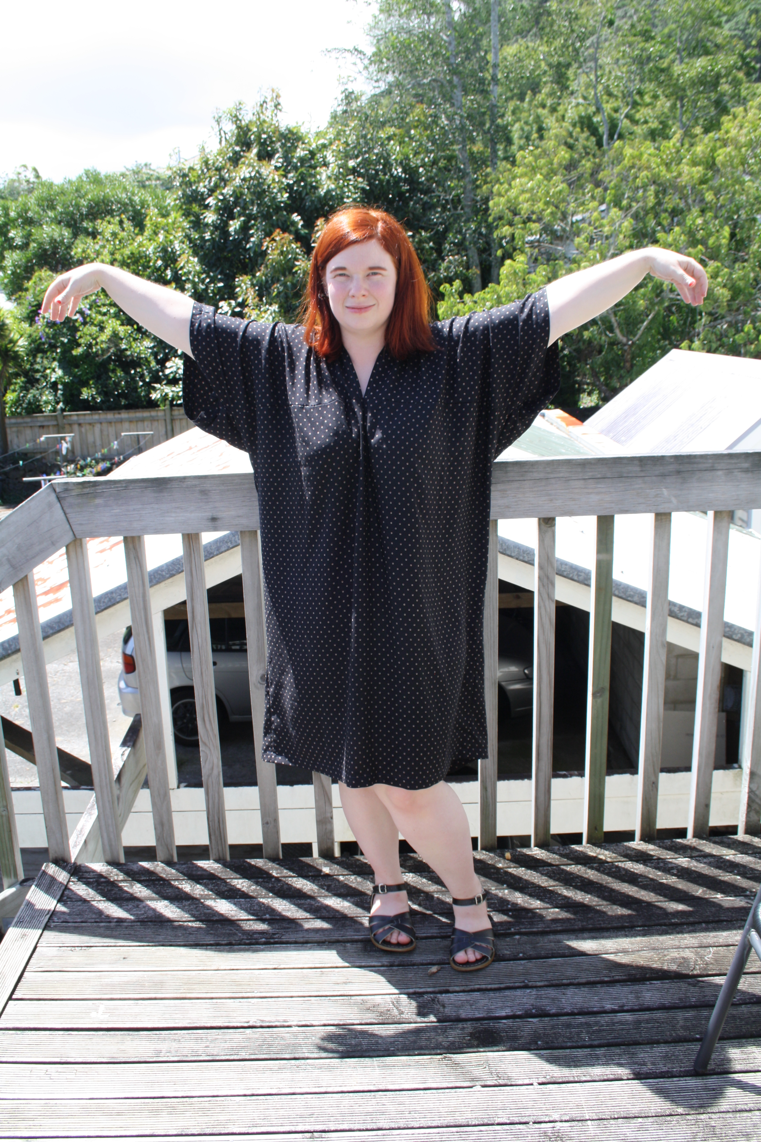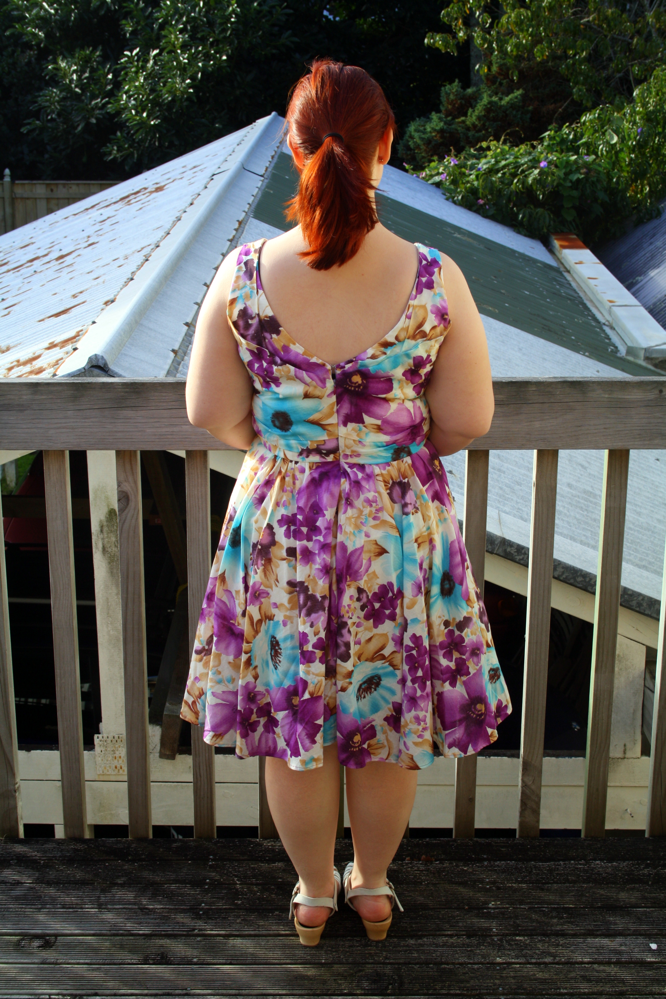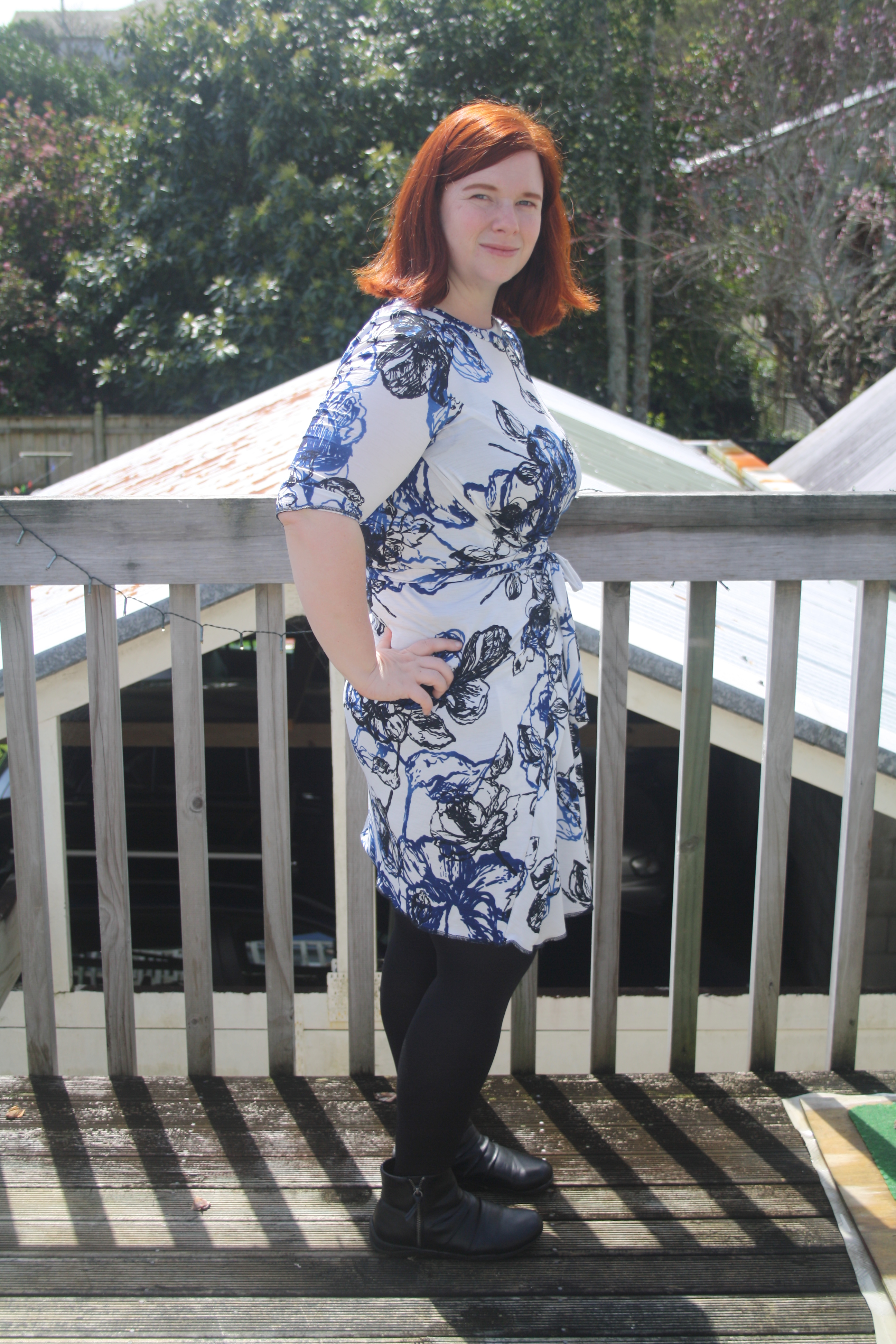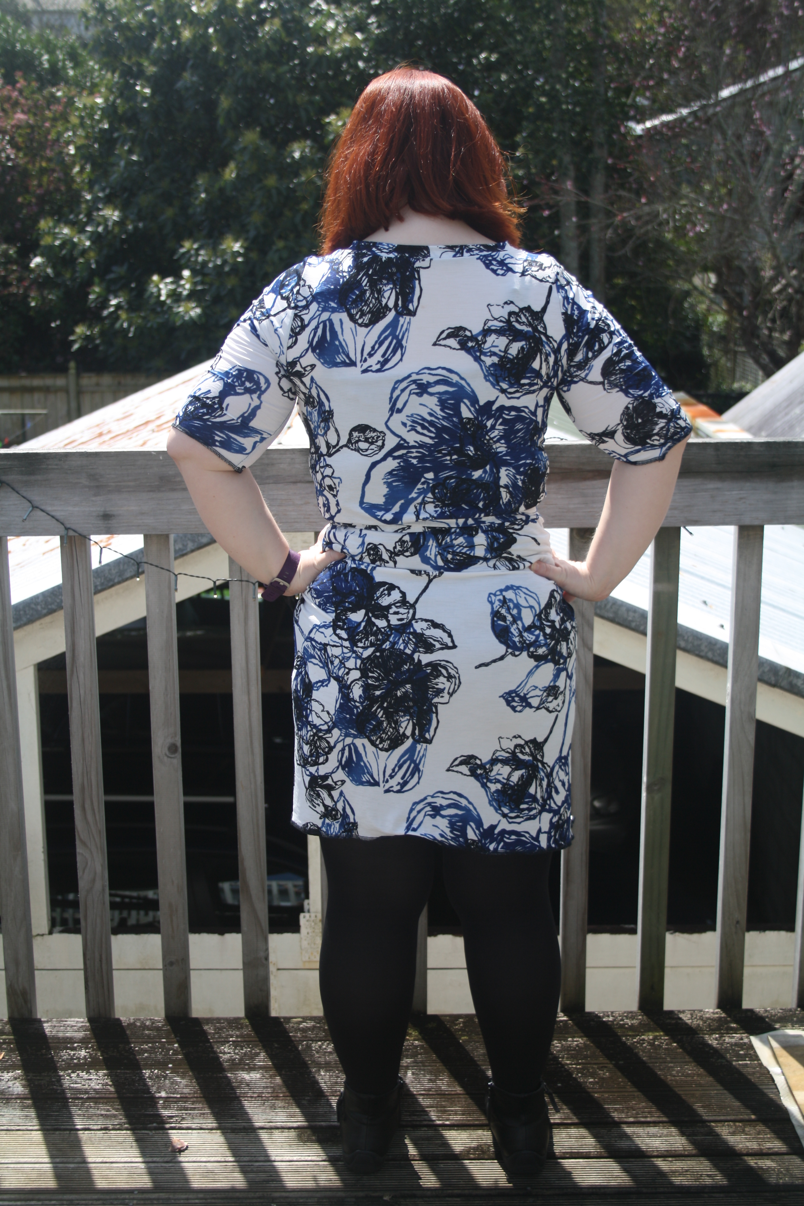 Nothing about the line drawing of this pattern or the sample photo on the model indicated that this would be a tight, short dress – but that’s what I got. I feel like these photos do not adequately convey how short this dress is. Maybe I’m becoming a prude in my old age, but I don’t want to be pulling my dress down every few minutes or worrying about whether my undies are on display. No thanks! Luke tried to insist that it wasn’t that short – until I bent down to pat the neighbour’s cat and he said “Oh…I can see a good two thirds of your knickers.” Fantastic.